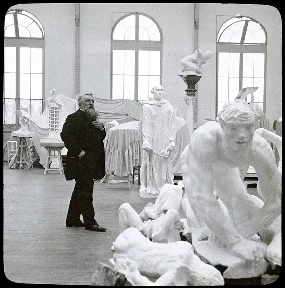 Auguste Rodin in his studio. Credit - Albert Harlingue. Rodin Museum